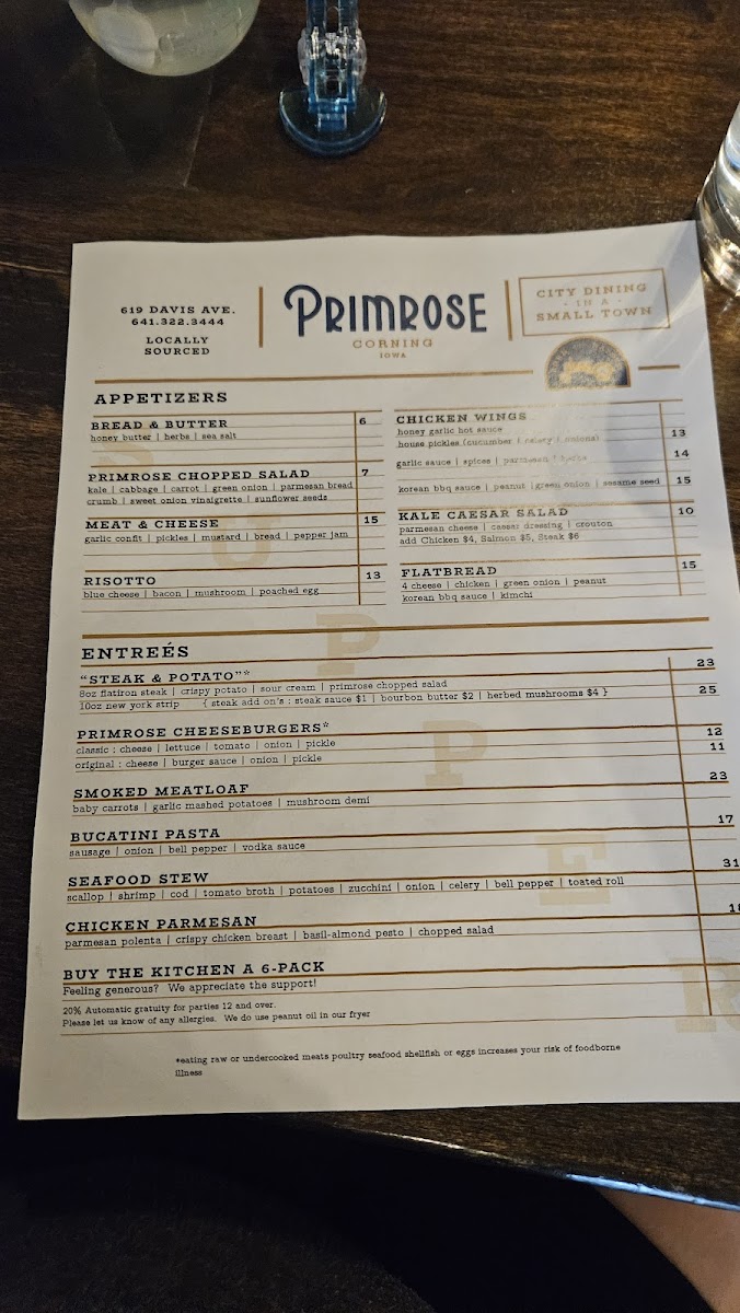 Introducing Primrose, a culinary gem nestled in the heart of Corning, IA. This vibrant restaurant offers a dynamic menu that reflects a commitment to excellence, showcasing locally sourced ingredients. Patrons rave about its diverse offerings, from the mouthwatering pulled pork sandwich to exquisite steaks that have left food enthusiasts in awe.
